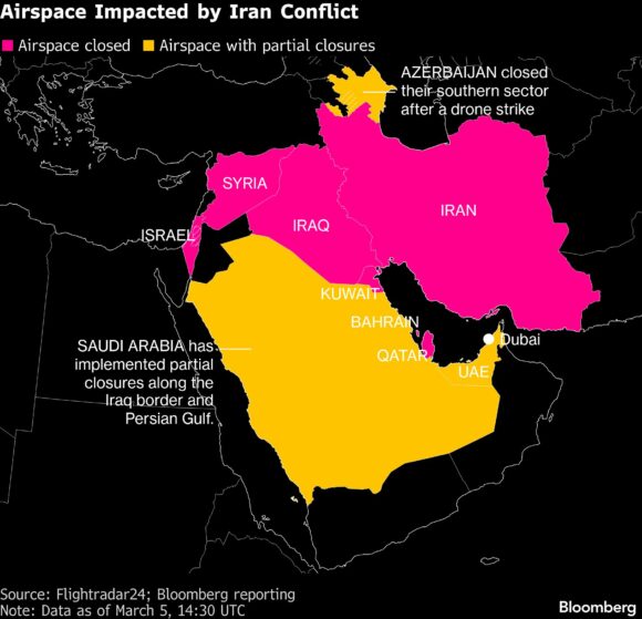 Dubai’s ascent as a burgeoning finance and wealth hub faces a test as the US-Israeli war with Iran hits close to home. Fighting has intensified for a second week as countries from Saudi Arabia to Bahrain came under renewed attacks. A drone strike caused a fire near the US consulate in Dubai last week, and thousands of flights to the area have been scrapped though airlines are trying to resume them.