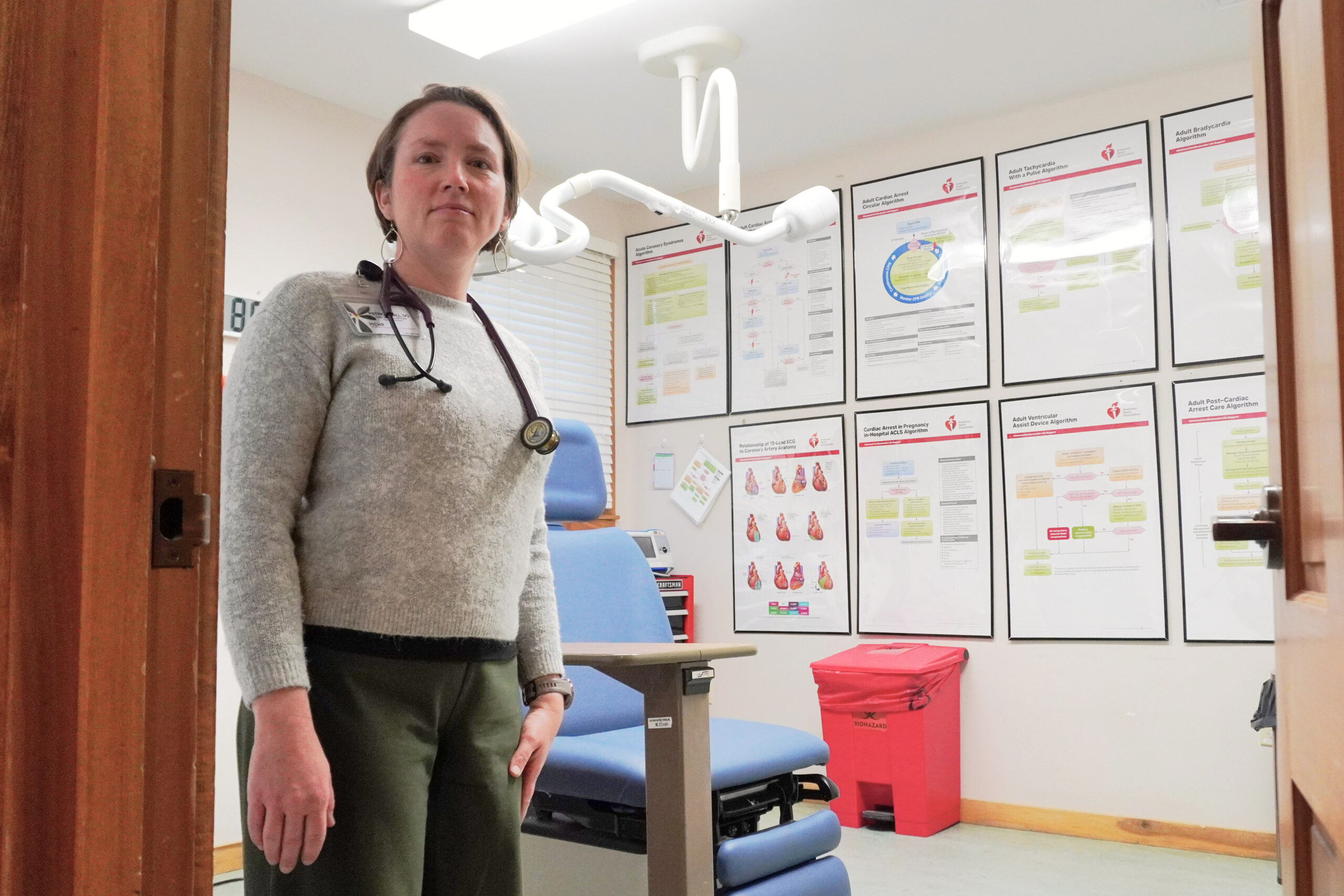 An older couple in flannel pajamas sat together in the waiting room. A toddler waved as Patricia Hall walked past him, a stethoscope draped over her neck. The family physician waved and smiled back.