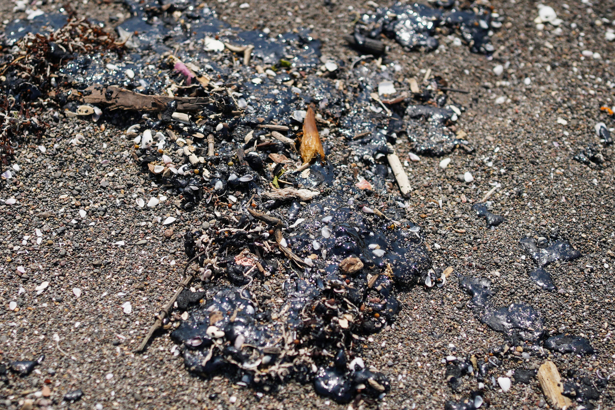 Photograph: Crude oil slicks on a beach in Alvarado, Veracruz state, Mexico, on March 24, 2026; photo credit: Victoria Razo/AFP/Getty