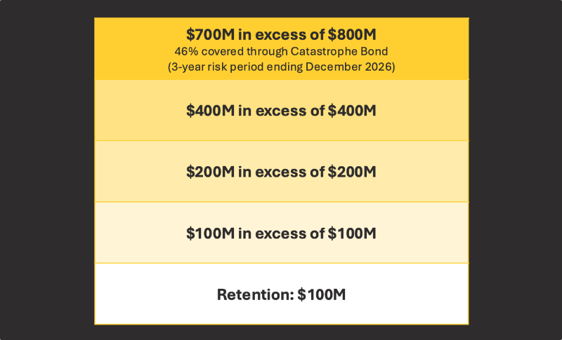 But notably, 71% of the top-layer remains collateralized, suggesting that alongside the catastrophe bond there is also private placements from collateralized reinsurance providers, potentially insurance-linked securities (ILS) funds.